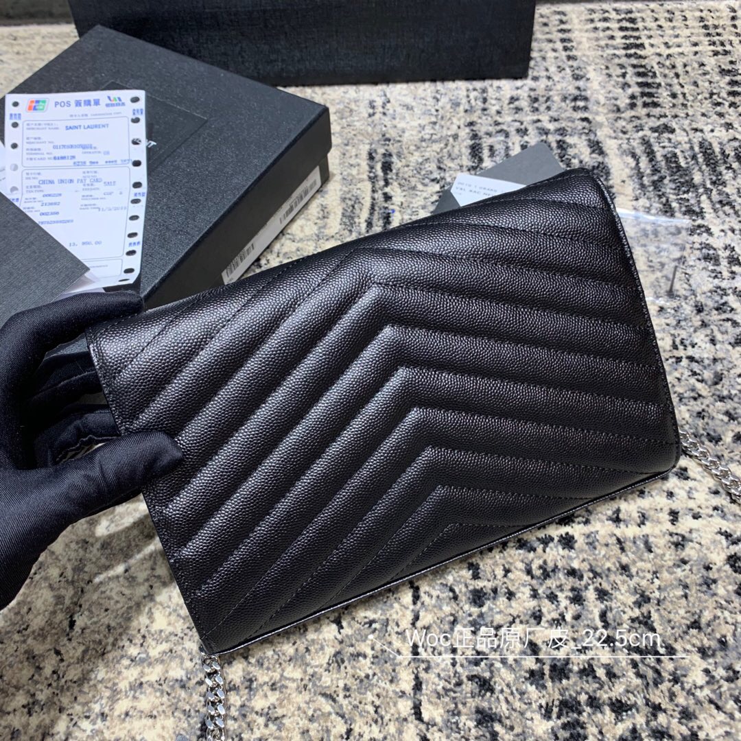 saintlaurent包包官網 聖羅蘭臺灣官網ysl MONOGRAM 黑色細粒紋理提花凸紋真皮鏈式皮夾