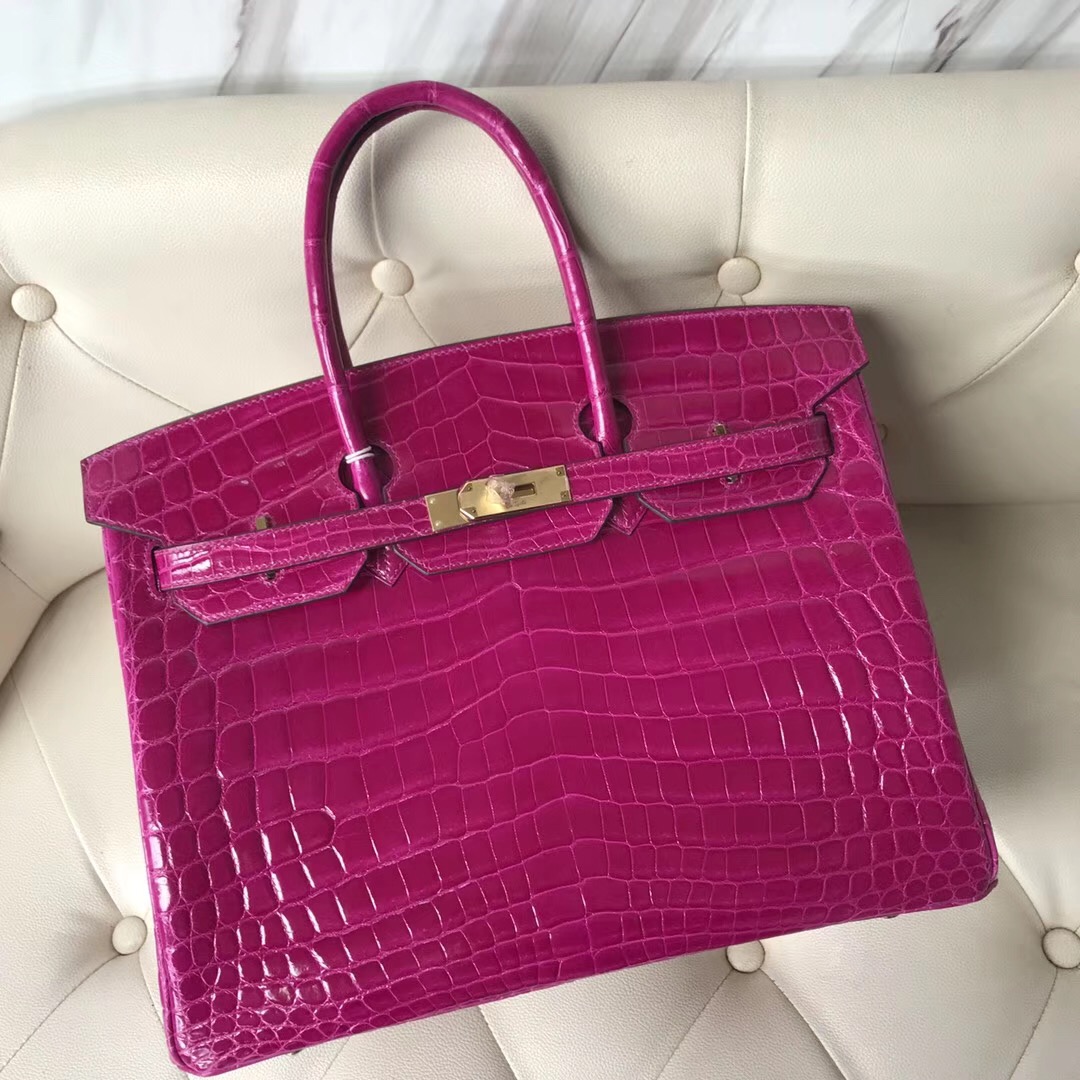 臺灣新北市愛馬仕鉑金包價格及圖片Taiwan Hermes Birkin 35cm 超大容量 亮面兩點 尼羅鱷魚 J5天方夜譚粉紫 Rose sheheraradez、接受定制️