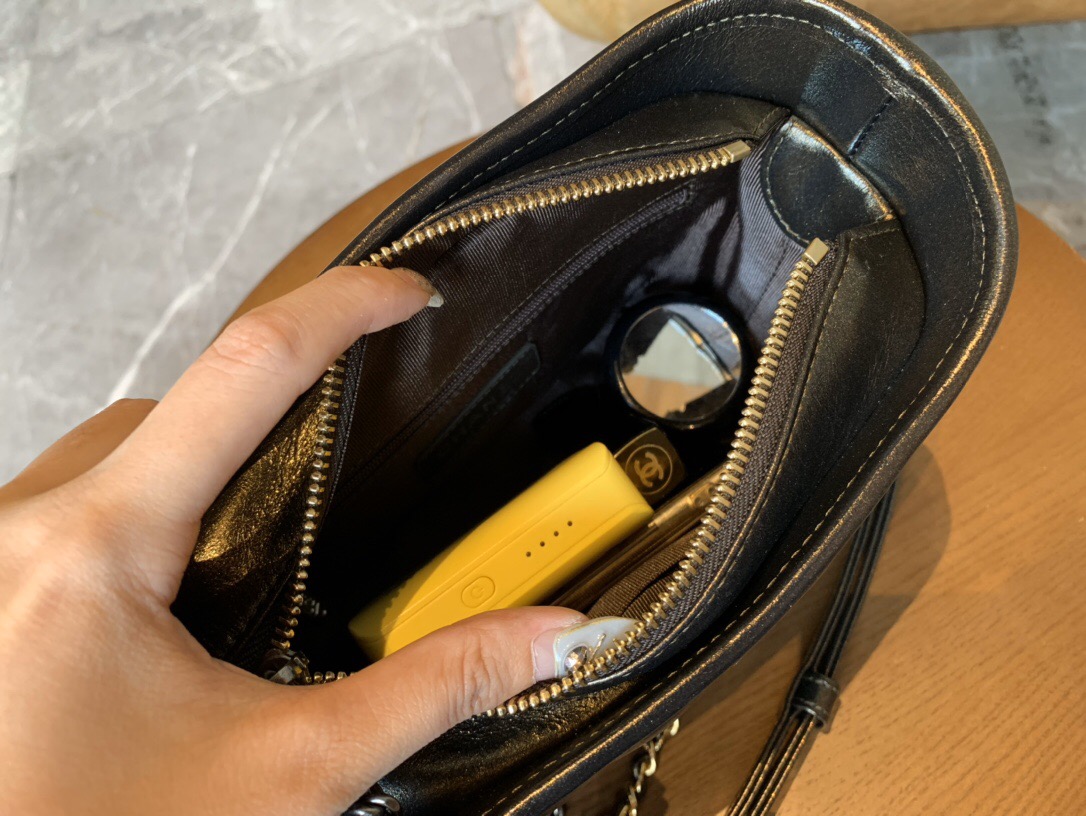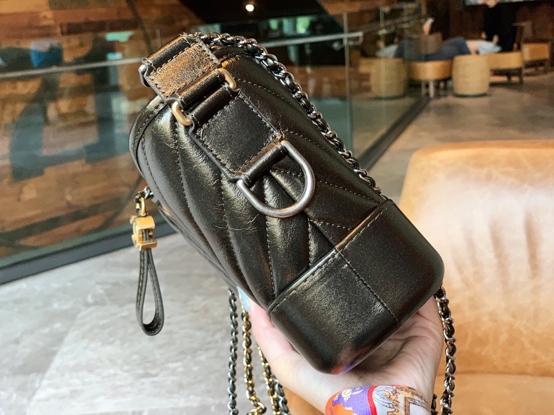 香奈兒Chanel gabrielle流浪包 黑色與金色 金屬質感皺紋山羊皮、小牛皮