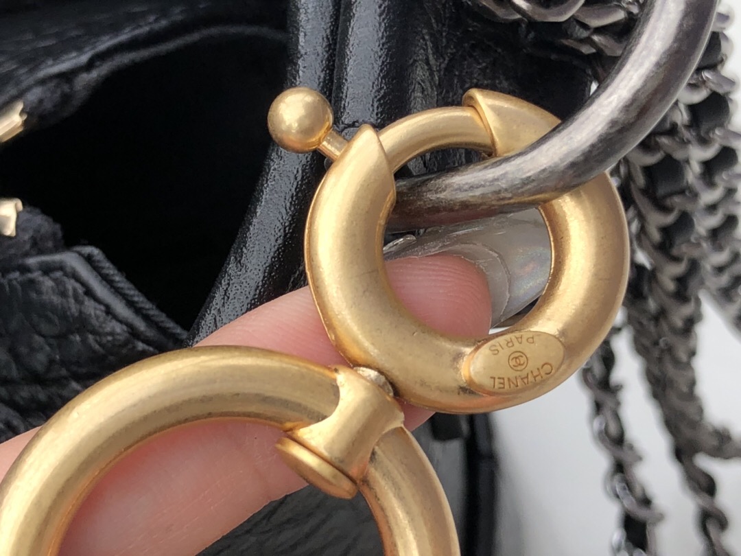 香奈兒Chanel gabrielle流浪包 黑色與金色 金屬質感皺紋山羊皮、小牛皮