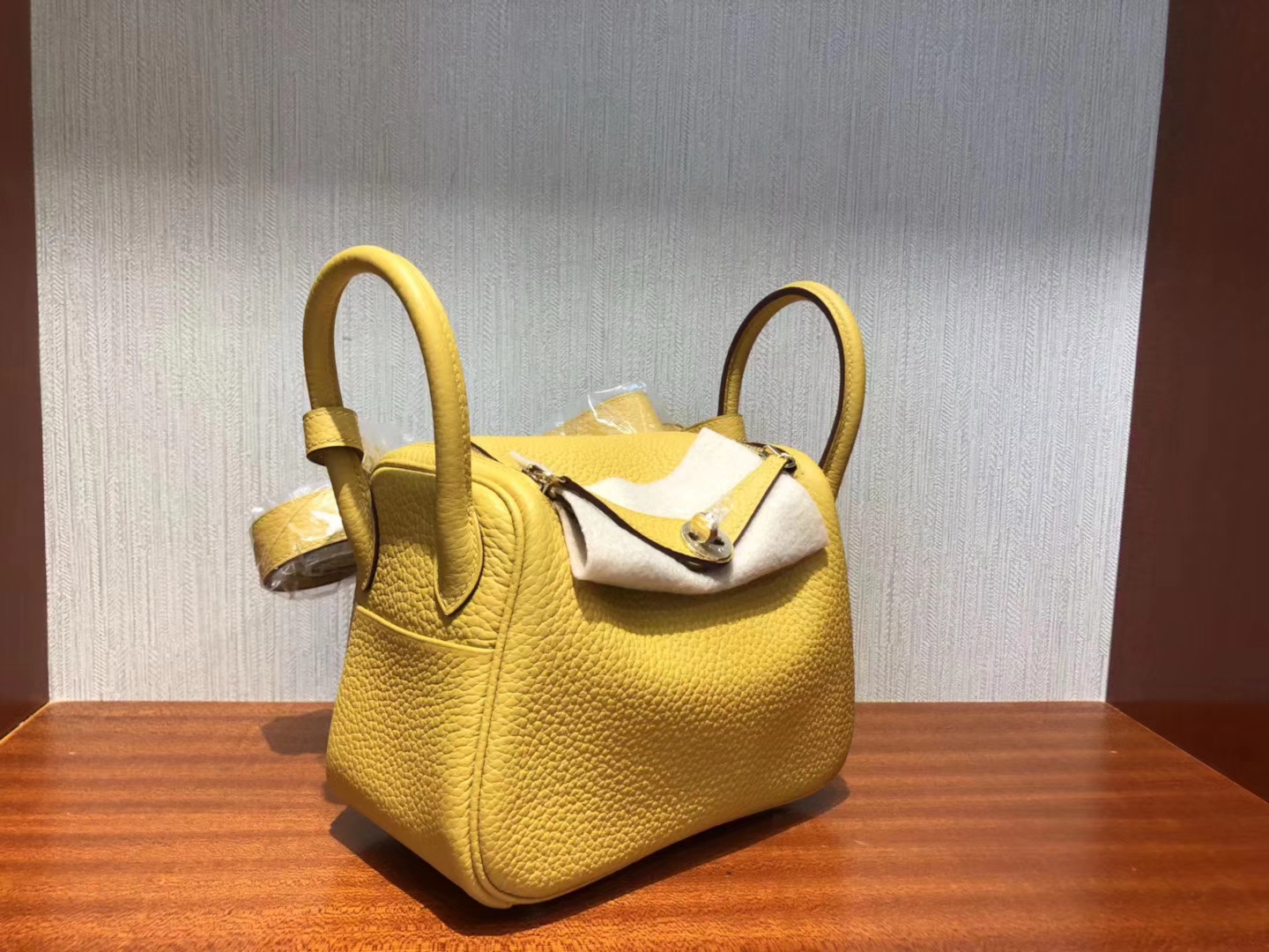 臺灣愛馬仕lindy迷妳19尺寸 價格及圖片 Hermes Lindy mini 9D琥珀黃 Amber taurillon Clemence leather 禦用原裝進口大牛皮 黑色油邊 全手工蠟線縫