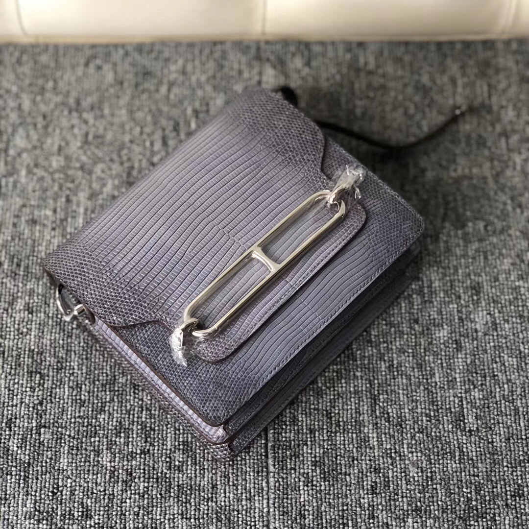 香港新界愛馬仕豬鼻子包包價格及圖片 Hermes Roulis 19cm Lizard 禦用進口蜥蜴皮 8F Etain 錫器灰 全手工蜜蠟線縫 銀扣 現貨 in stock