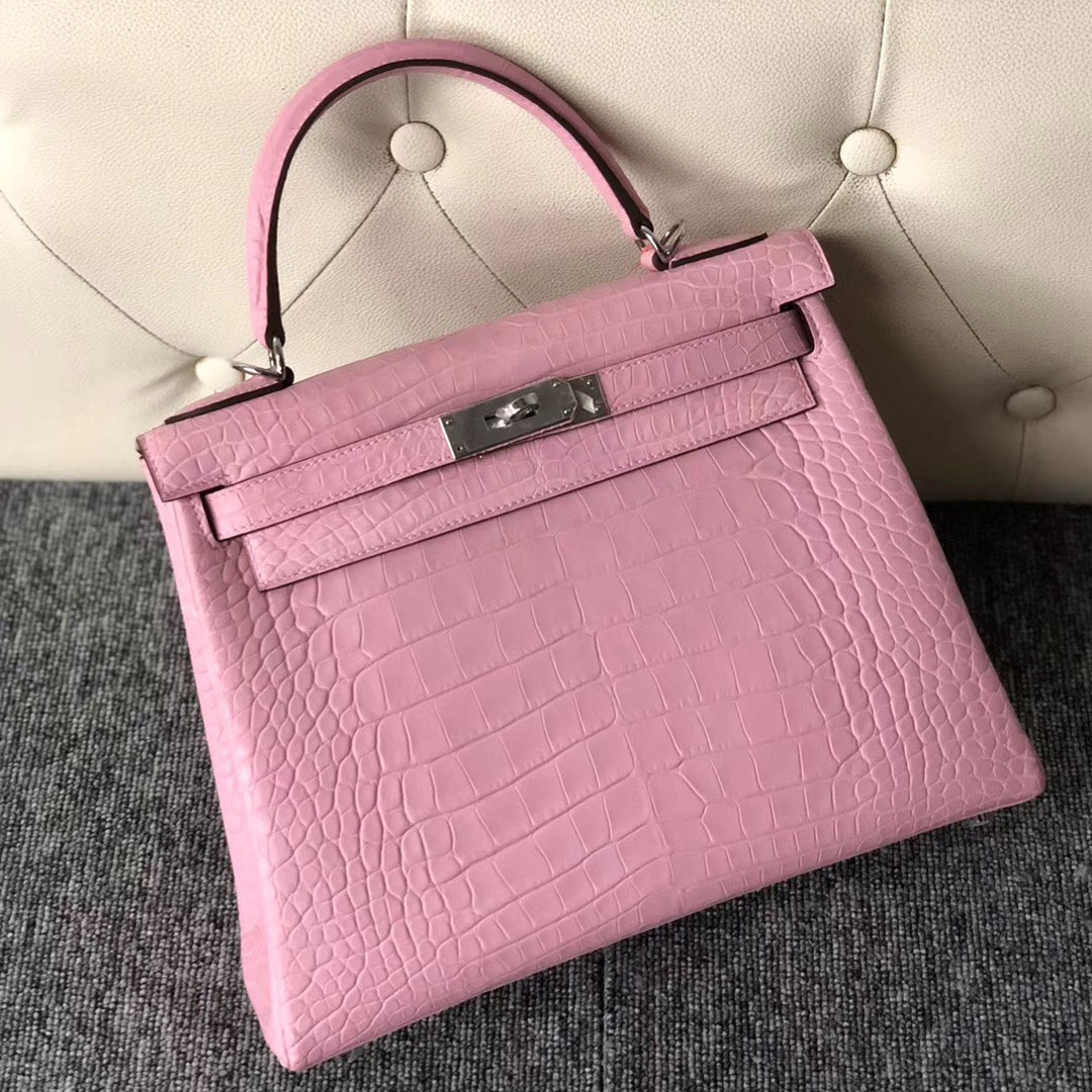 Hermes Kelly 28cm 霧面方塊 美洲鱷魚 Matte alligator crocodile 5P櫻花粉 Pink Lizard 銀扣 客定出貨