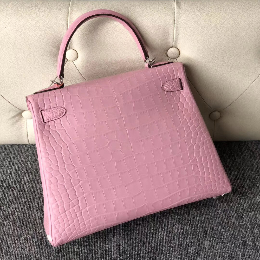 越南愛馬仕專賣店地址 Hermes Kelly 25cm VS 28cm 霧面方塊 美洲鱷魚 Matte alligator crocodile 5P櫻花粉 Pink 銀扣 客定出貨