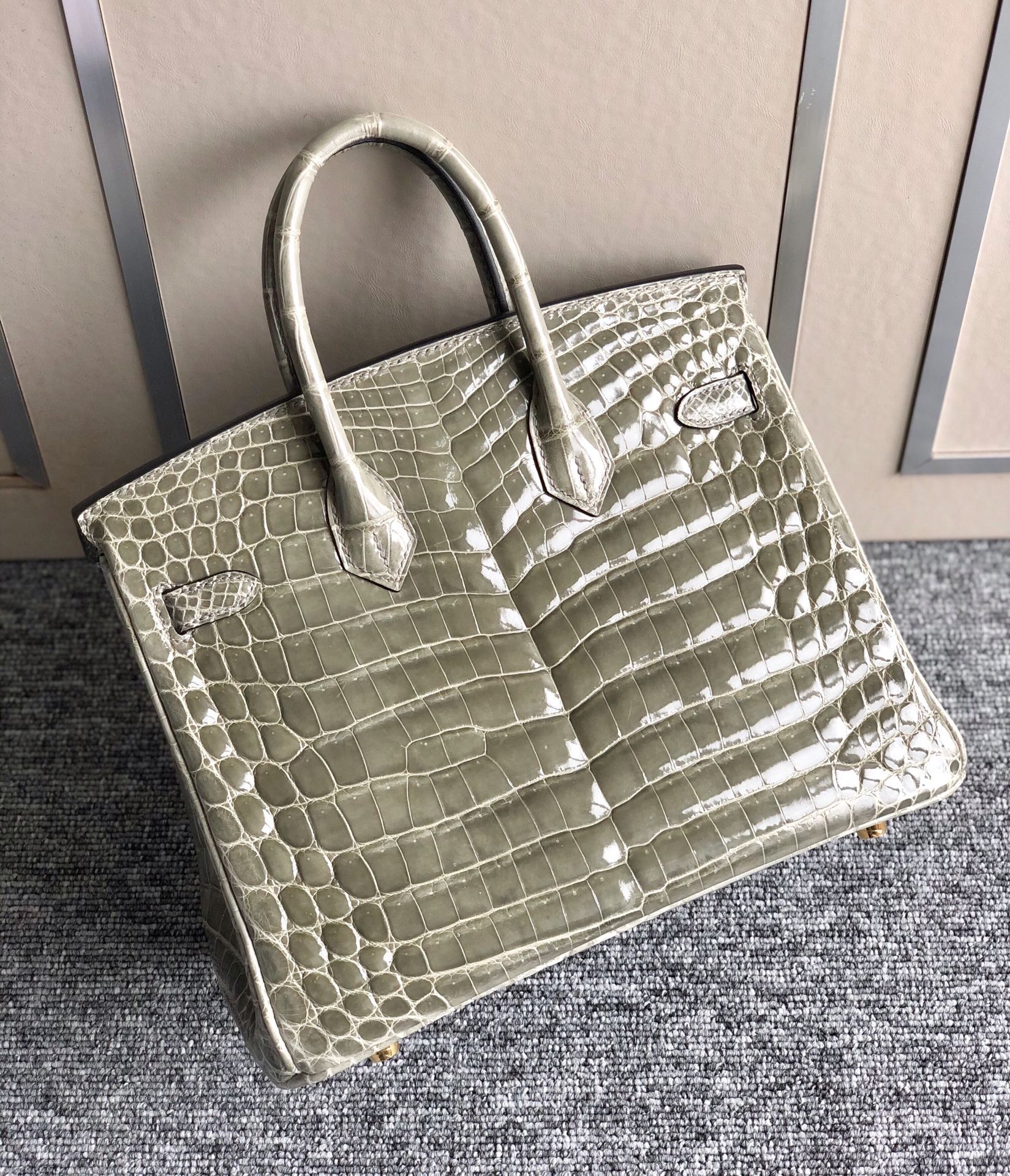 愛馬仕鱷魚皮鉑金包多少錢 Spain Hermes Kelly 25cm bag CK81斑鳩灰 Gris Tourterelle 亮面兩點 尼羅鱷魚 供珠鱷 Shiny Nilo Crocodile 全手工蜜蠟線縫 完美品相
