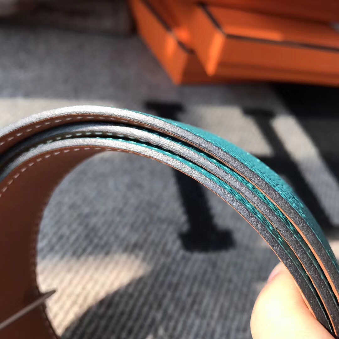 愛馬仕皮帶H扣 Hermes腰帶孔雀綠配金棕色 75碼~115歐碼尺寸扣頭任意搭配