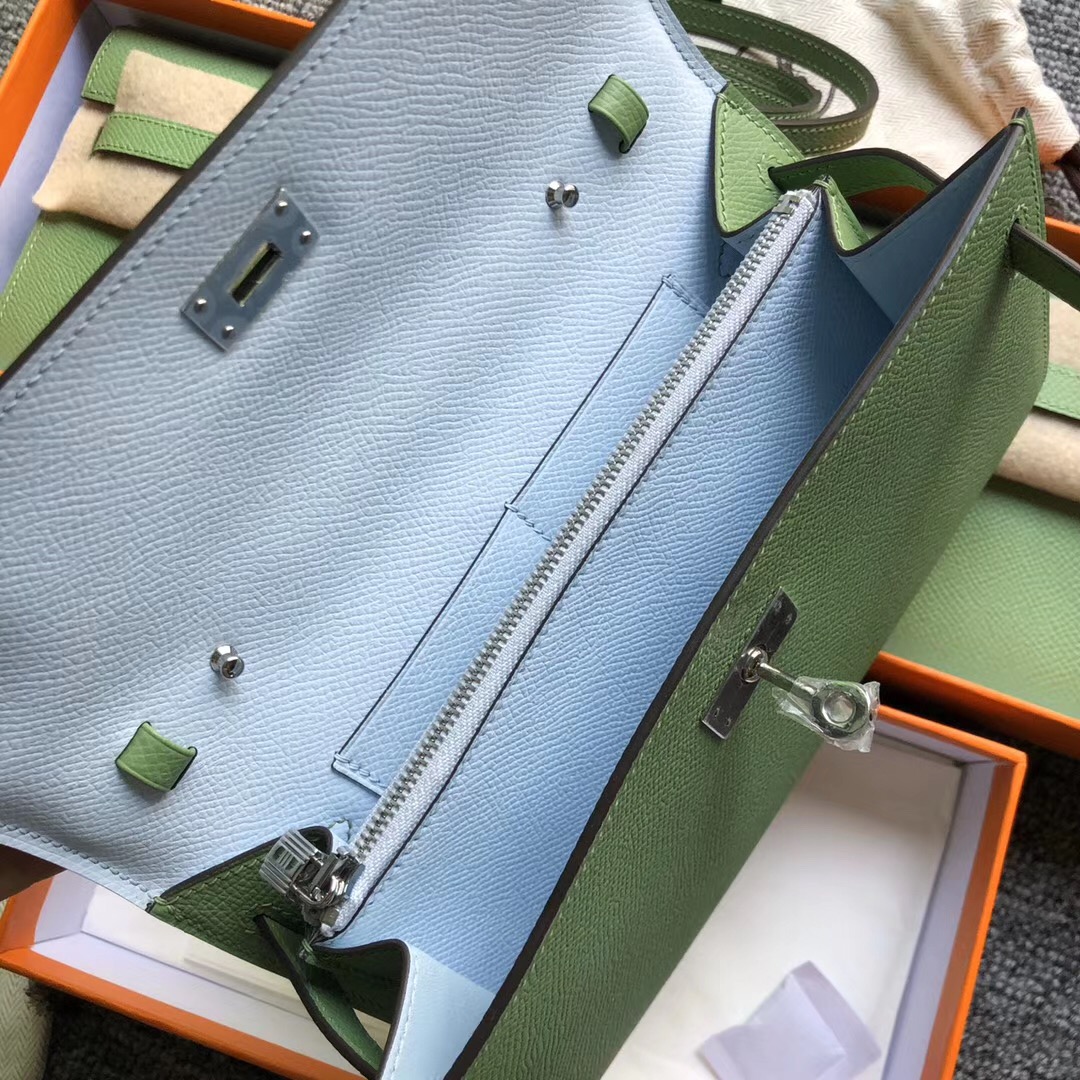 香港香港島中西區 Hermes Portefeuille Kelly Classique To Go epsom 3i Vert Criquet 牛油果綠 內拼 t0 霧藍色 blue brume 金扣