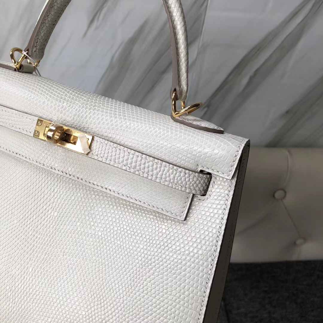 臺灣高雄市愛馬仕凱莉包圖片 Hermes Kelly 25cm Lizard 蜥蜴皮 8L 奶油白 Beton 金扣 全手工蜜蠟線縫制