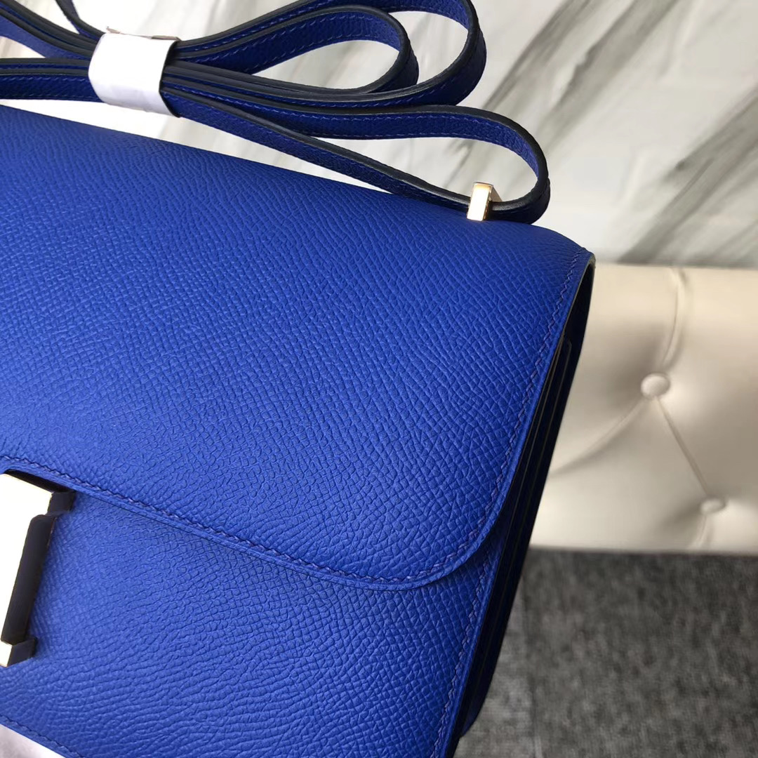 香港東區 愛馬仕康康空姐包 香港觀塘區 Hermes Constance Elan 26cm Epsom 7T 電光藍 Blue Electric 全手工蜜蠟線縫制 金扣