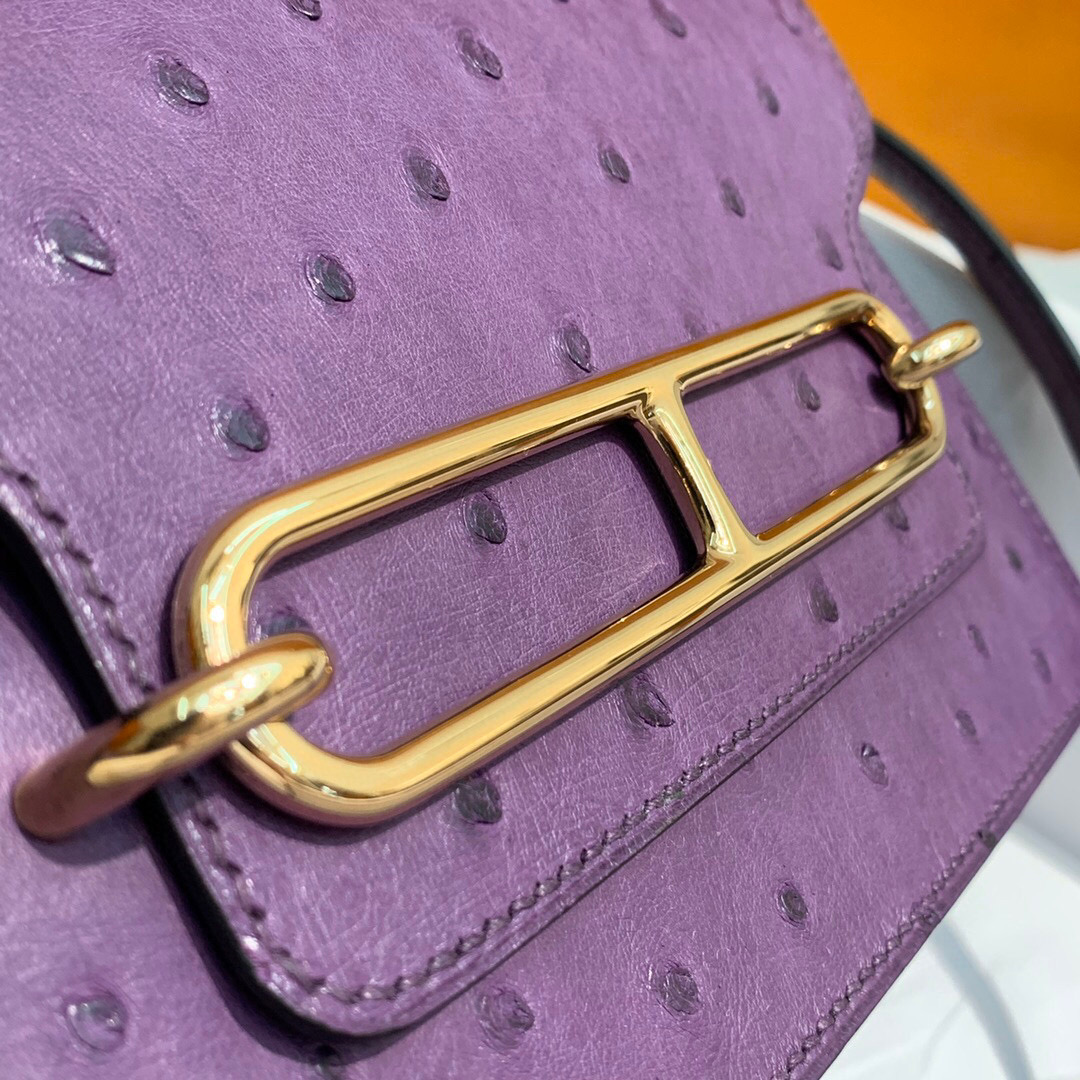 香港西貢區西貢 愛馬仕豬鼻子包 Hermes Roulis mini P9 Anemone 海葵紫 禦用原廠KK南非鴕鳥皮 全手工縫製蜜蠟線縫製