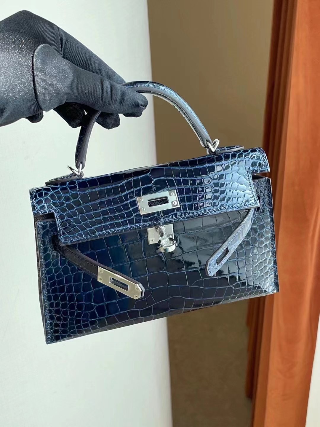 臺灣桃園市蘆竹區 愛馬仕迷你凱莉二代 Hermes Kelly Mini II 2代 74 皇室藍 blue Roy 亮面方塊 美洲鱷魚 Shiny Alligator Crocodile 全手工蜜蠟線縫製 現貨一只 in stock