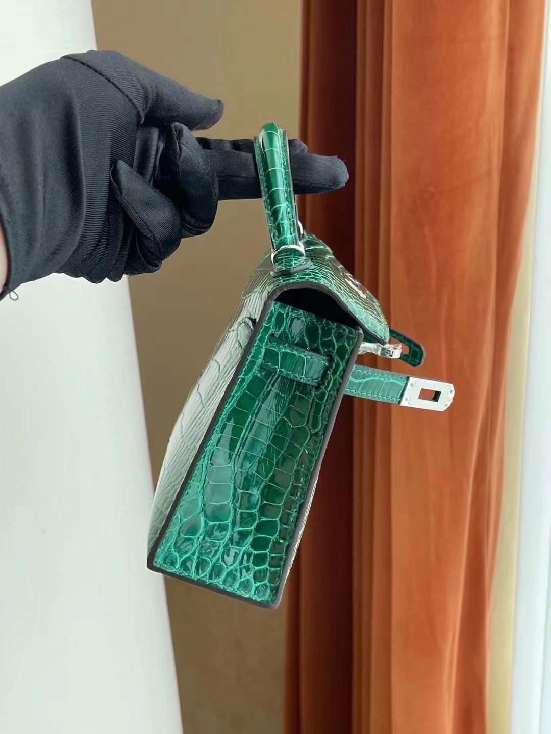 臺灣臺中市中區 愛馬仕迷你凱莉二代價格 Hermes Kelly Mini II 2代 銀扣 亮面方塊 美洲鱷魚 Shiny Alligator Crocodile 全手工蜜蠟線縫製