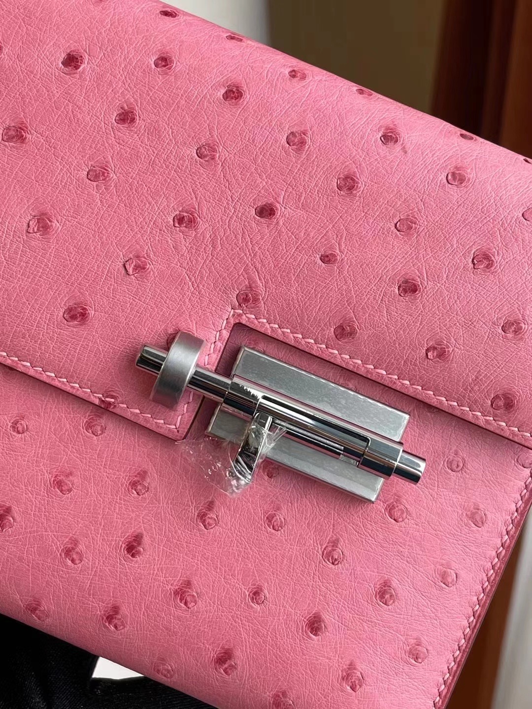 Hermes Verrou Mini Ostrich L4 Rose bubblegum 泡泡粉 禦用原廠KK 南非鴕鳥皮