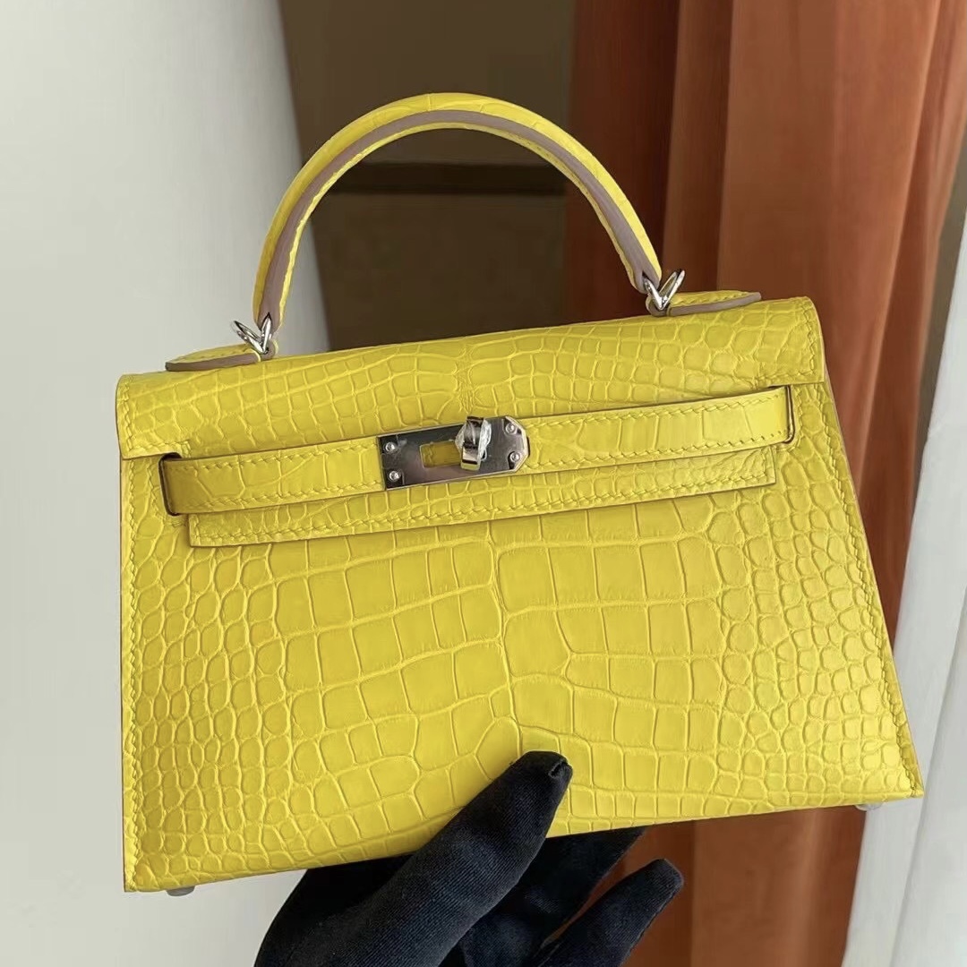Hermes Kelly Mini II 2代 9R Lime 檸檬黃 霧面方塊 美洲鱷魚 Matte alligator crocodile 銀扣 全手工蜜蠟線縫