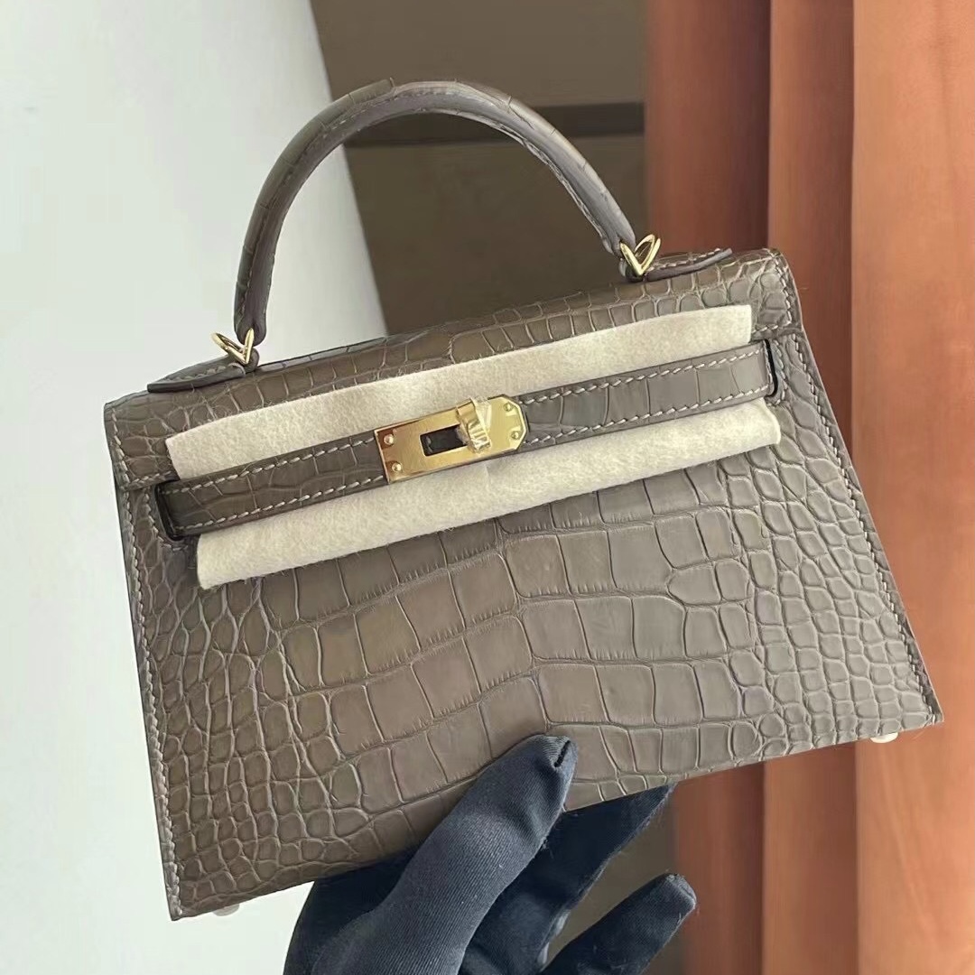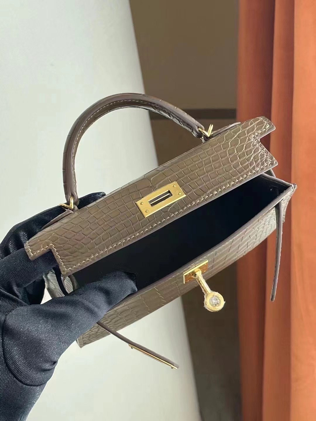 愛馬仕 Hermes Kelly Mini Ficelle 淡灰褐色 煙草色 Shiny Alligator Crocodile
