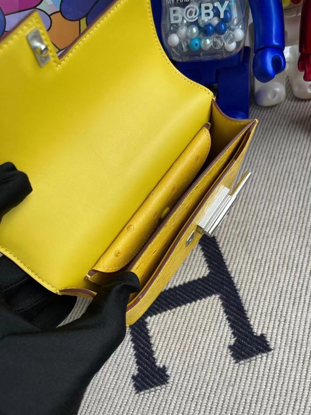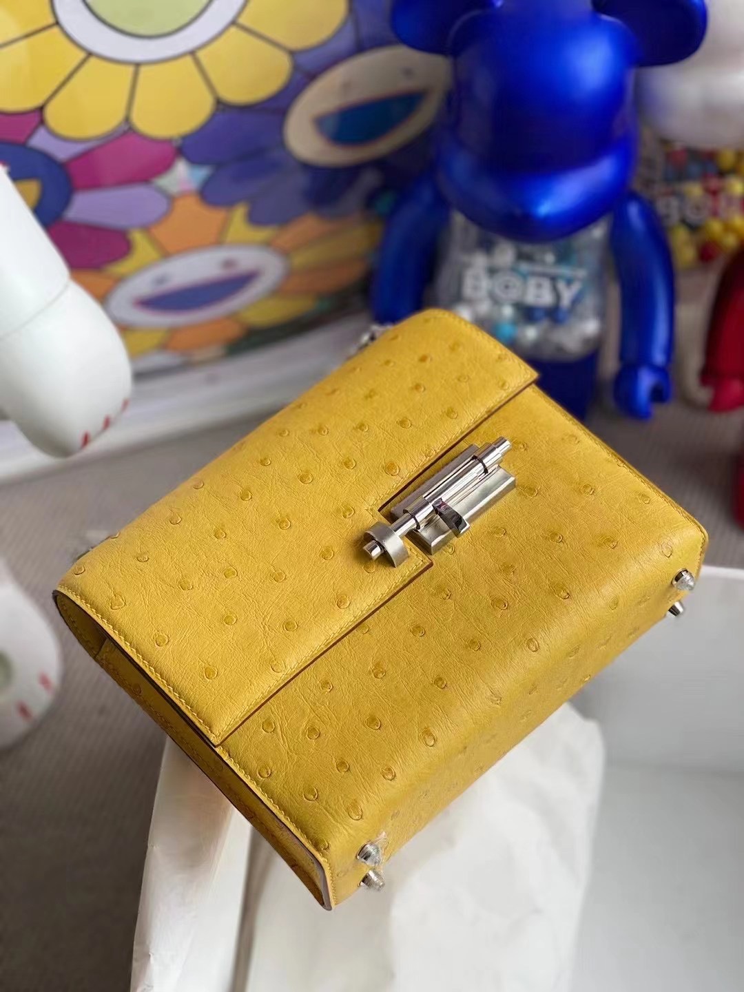 愛馬仕包包官網價格查詢 Hermes Verrou Mini 17.5cm ostrich 9D Jaune Amber 琥珀黃 全手工蜜蠟線縫製 銀扣 客訂出