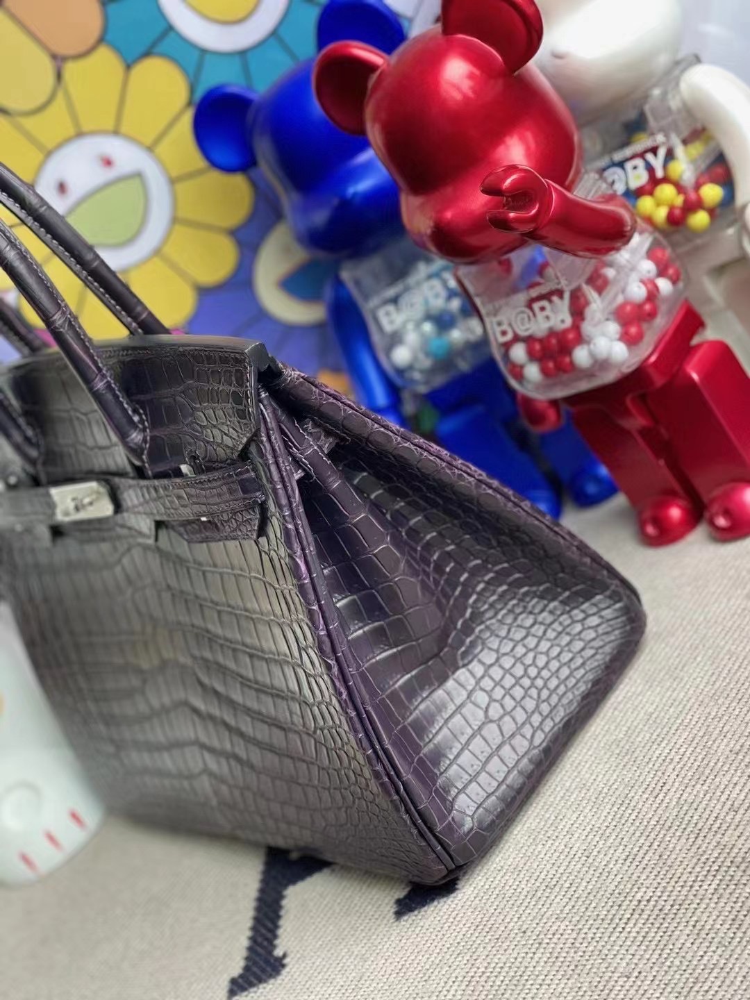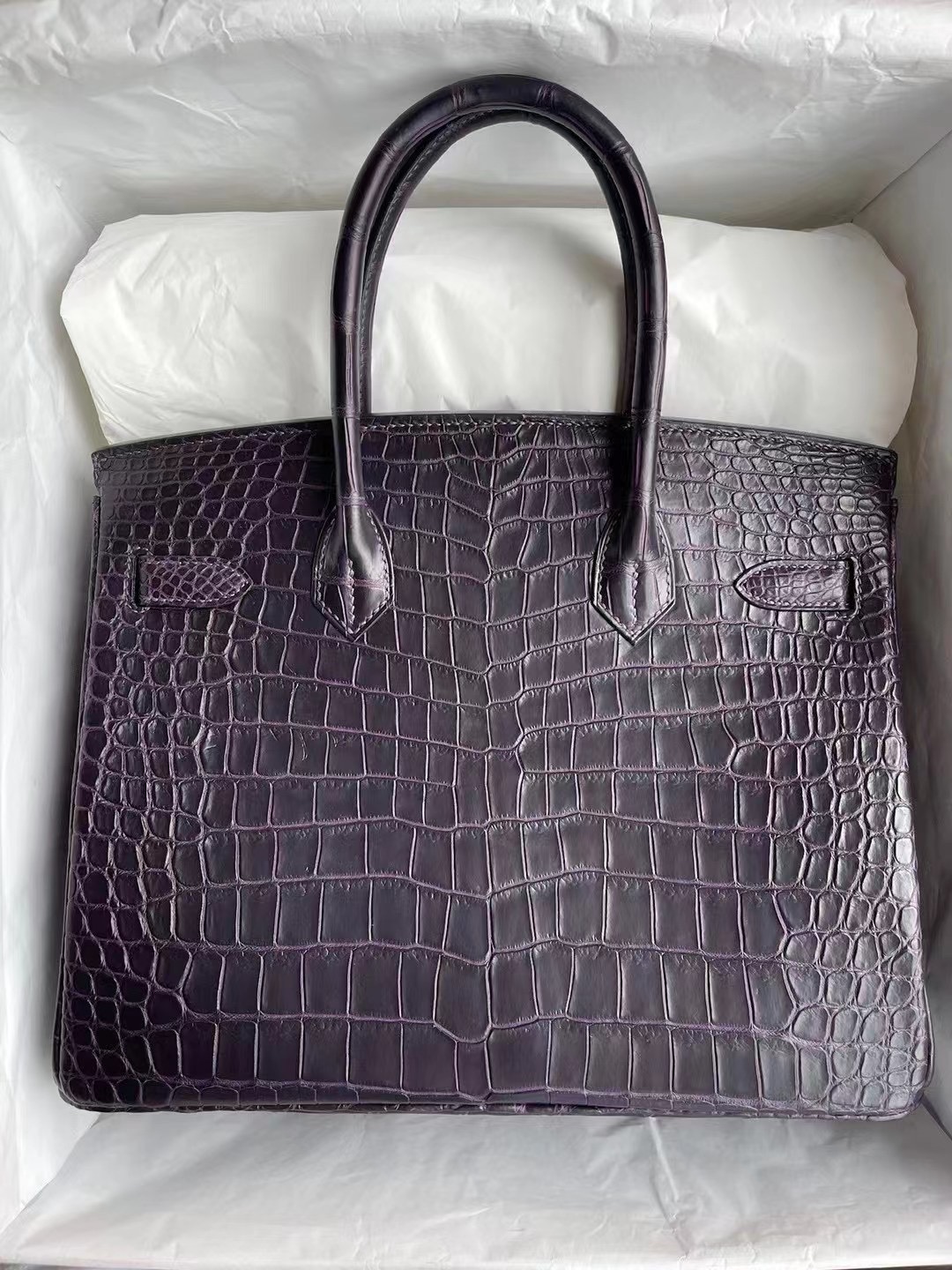 愛馬仕鉑金包官網價格查詢 Hermes Birkin 30cm 霧面 倒V 澳洲灣鱷 Matte Alligator Crocodile CK59 Raisin 葡萄紫 全手工蜜蠟線縫製 銀扣