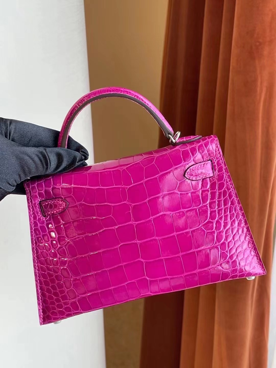 Bahrain Hermes Kelly Mini II 2代 J5 天方夜譚粉紫 Rose Sheheraradez 亮面方塊 美洲鱷魚 Shiny Alligator Crocodile 銀扣 全手工蜜蠟線縫製