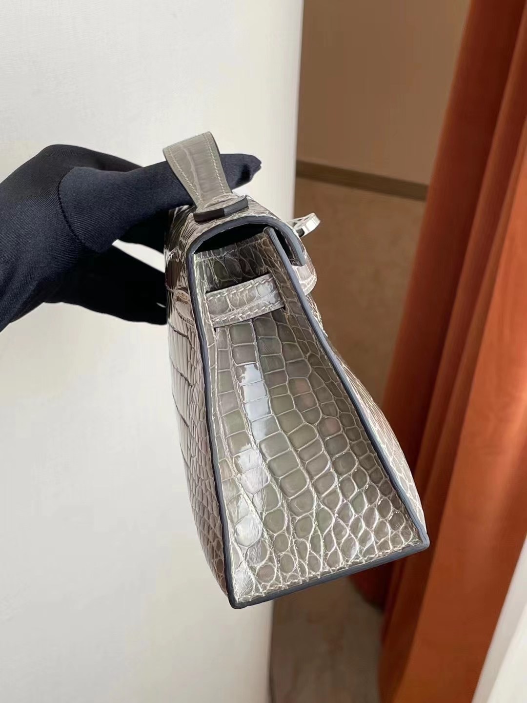 香港香港島中西區中環 愛馬仕凱莉包一代價格 Hermes MiniKelly Pochette 22cm CK81 Gris Tourterelle 斑鳩灰 亮面方塊美洲鱷魚 Shiny alligator crocodile 全手工蠟線縫製 銀扣 in stock