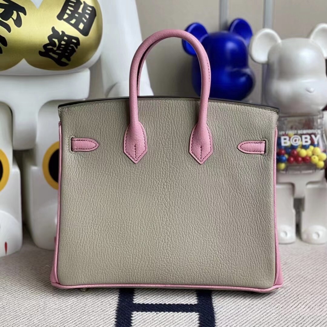 愛馬仕鉑金包 Los Angeles USA Hermes Birkin 25cm Chevre Mysore 山羊皮 CK81 Gris Tourterelle 斑鳩灰/5P Pink 櫻花粉 全手工蜜蠟線縫製 金扣 in stock