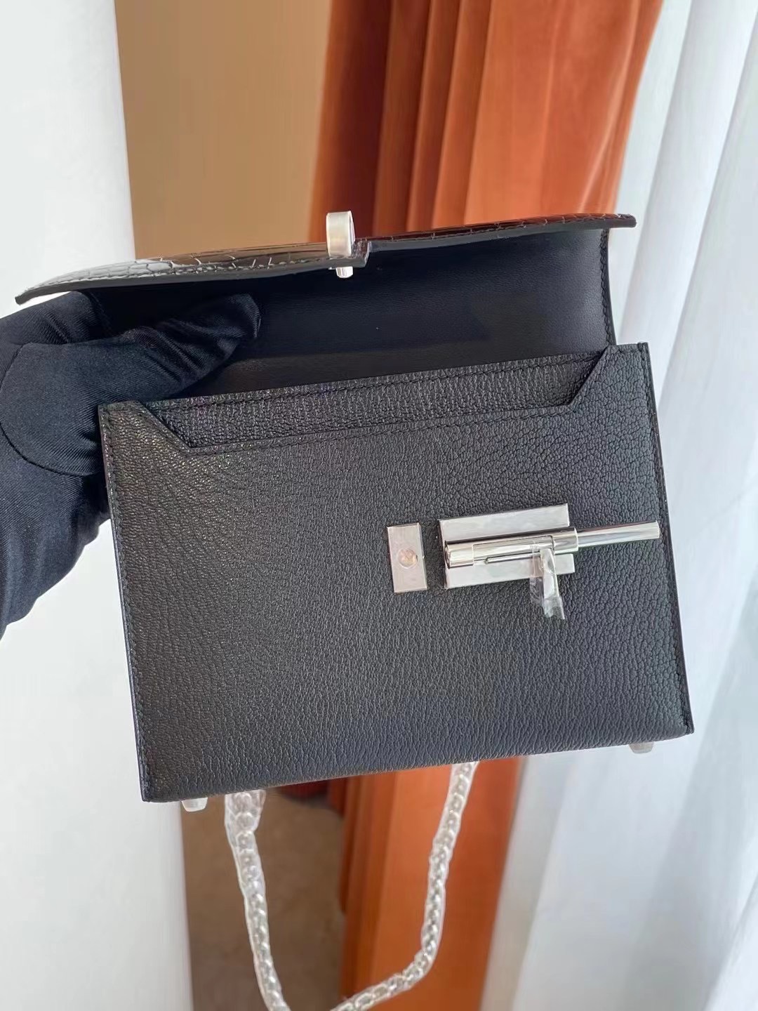 愛馬仕verrou 插銷包價格多少錢 Hermes Verrou MINI 89 Noir 黑色手槍包美洲鱷魚