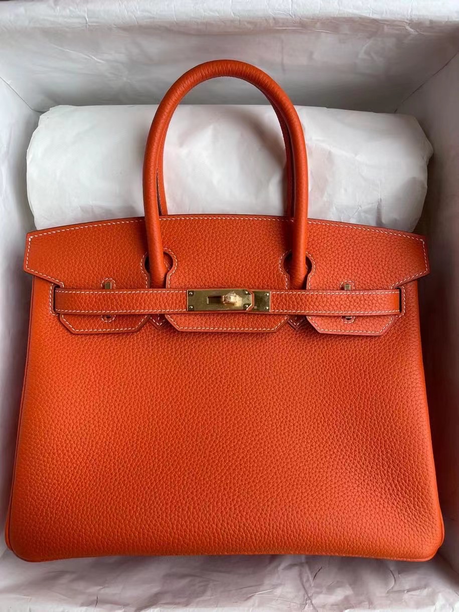 愛馬仕鉑金包包網站 Hermes Birkin 30cm 9J Feu 火焰橙 Togo 小牛皮 金扣 全手工蜜蠟線縫製 客定出
