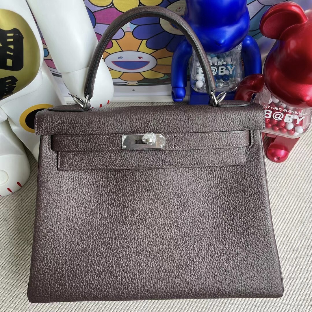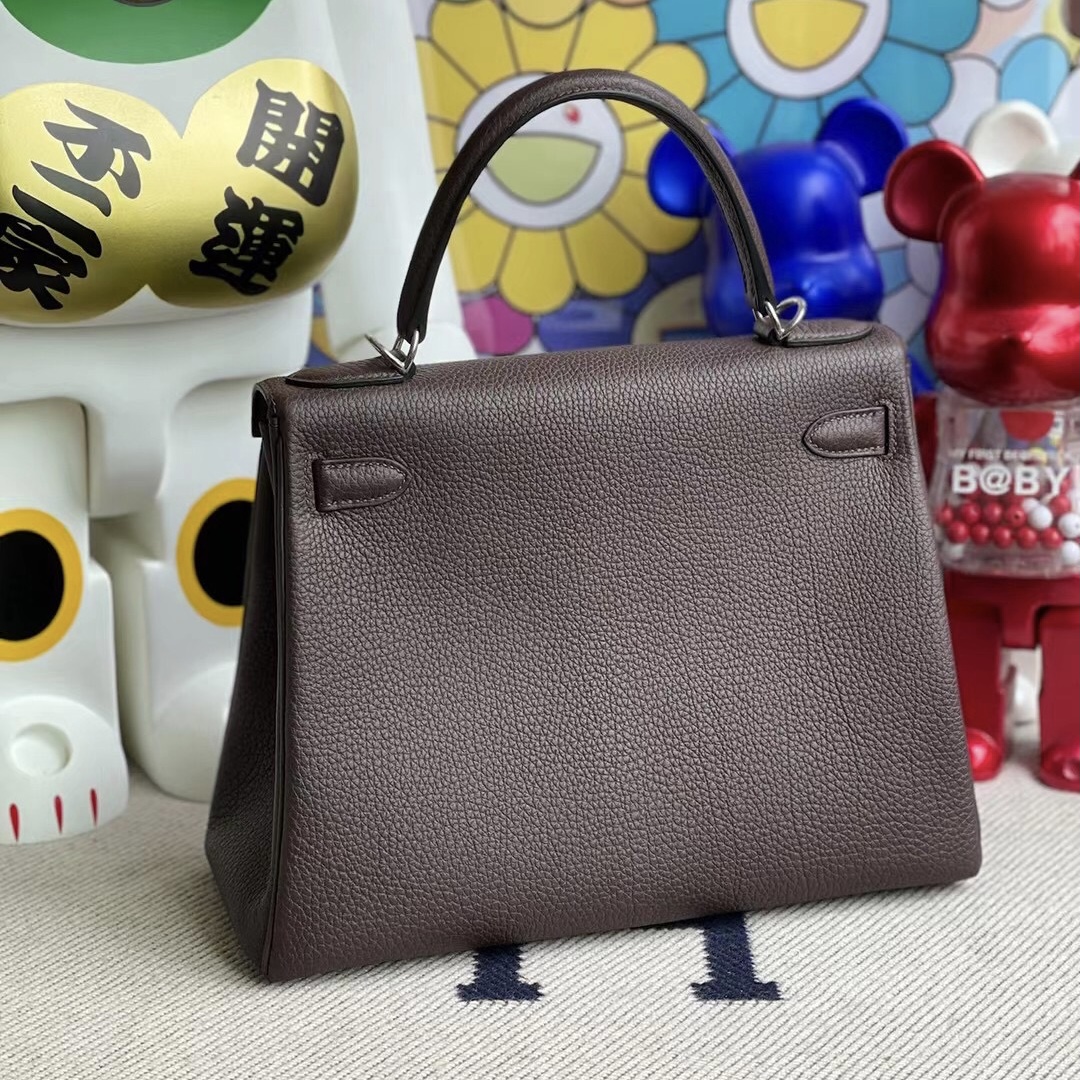愛馬仕凱莉包28尺寸價格及圖片 Hermes Kelly 28cm Togo CK47 Chocolate 巧克力 禦用原廠 Togo 小牛皮 銀扣 全手工蜜蠟線縫製 客定