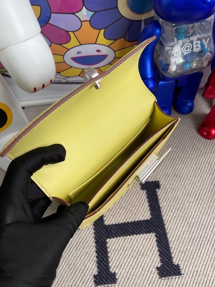 愛馬仕機關槍包價格及圖片 Hermes Verrou 17cm Chevre Mysore 進口 山羊皮 1Z jaune poussin 小雞黃 銀扣 全手工蜜蠟線縫製 客定出