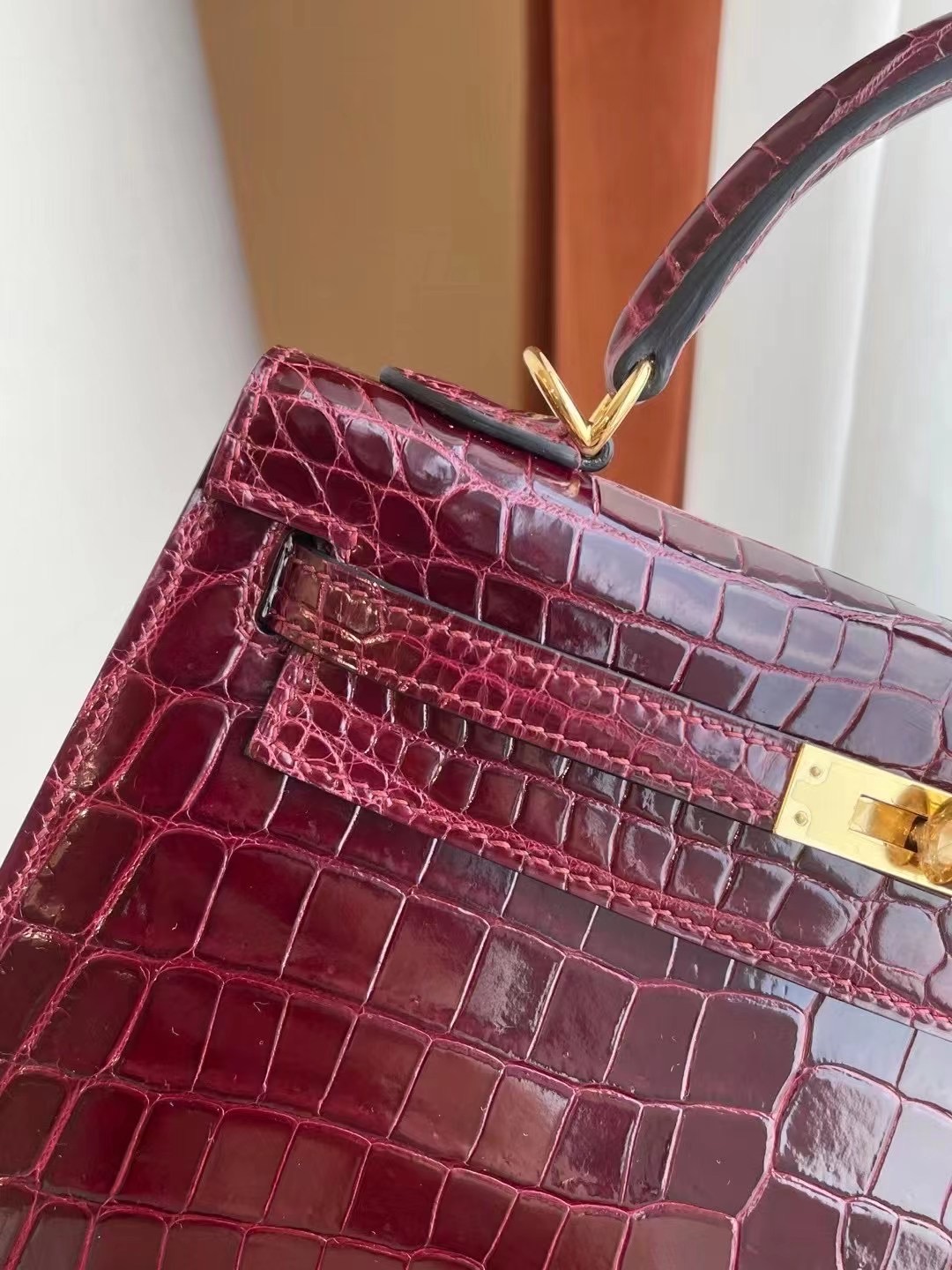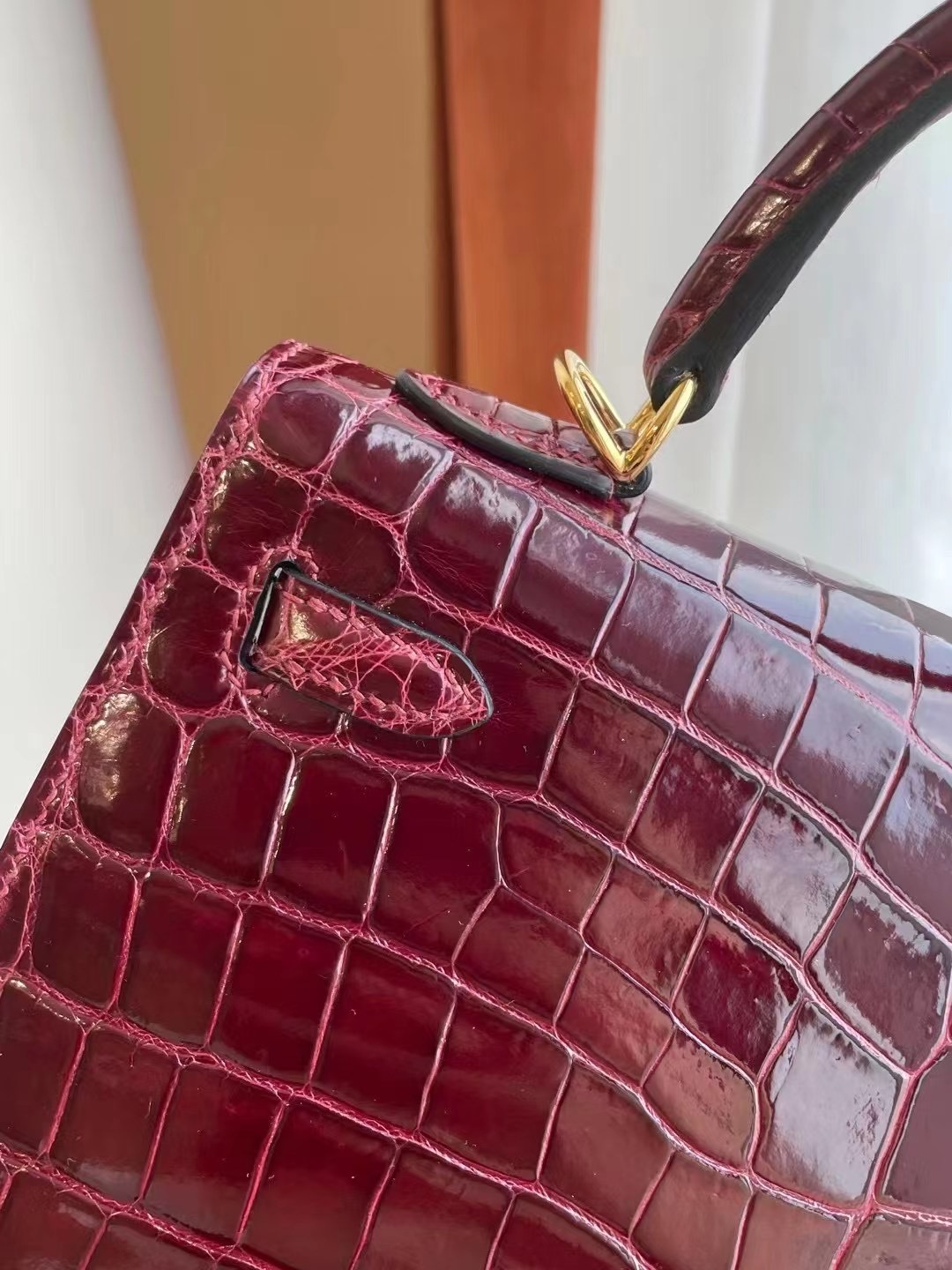 愛馬仕凱莉包25價格 Hermes kelly 25cm CC57 Bordeaux 波爾多酒紅 亮面尼羅鱷魚 Shiny Nilo Crocodile 金扣 全手工蜜蠟線縫製