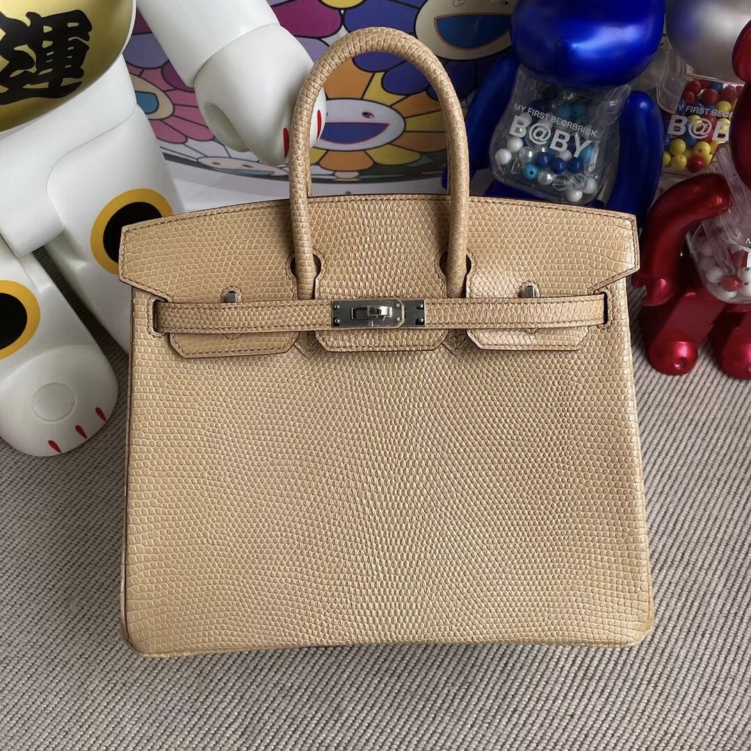 愛馬仕鉑金包臺灣價格 Hermes Birkin 25cm Lizard 進口蜥蜴皮 CK14 beige 杏色 銀扣 全手工縫製 stock
