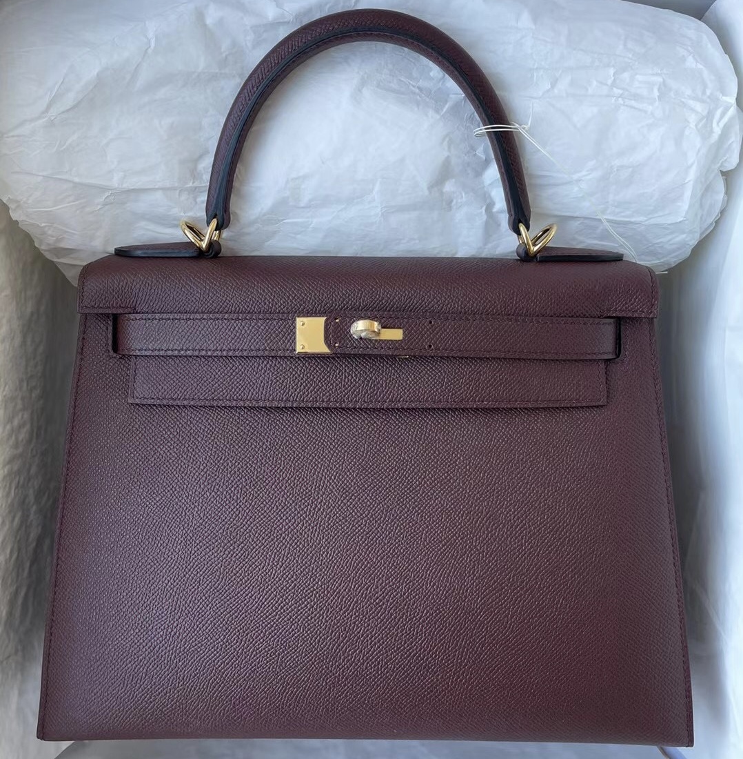 愛馬仕凱莉包28價格及圖片尺寸大小 Hermes Kelly 28cm Epsom X9 錦葵紫 Mauve Sylvestre 銀扣 55 Rouge H 愛馬仕紅 銀扣 57 波爾多酒紅 Bordeaux 金扣 全手工蠟線縫製