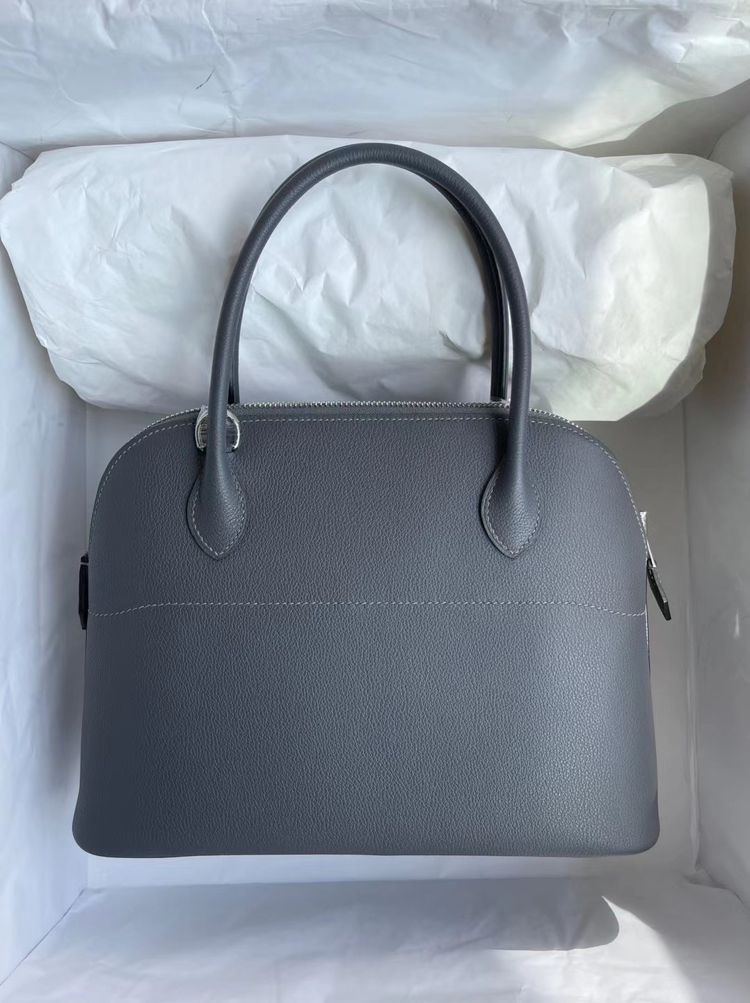 臺灣愛馬仕保齡球包價格 Hermes Bolide 27cm Evercolor 8F Etain 錫器灰 銀扣 全手工蜜蠟線縫製 客定出