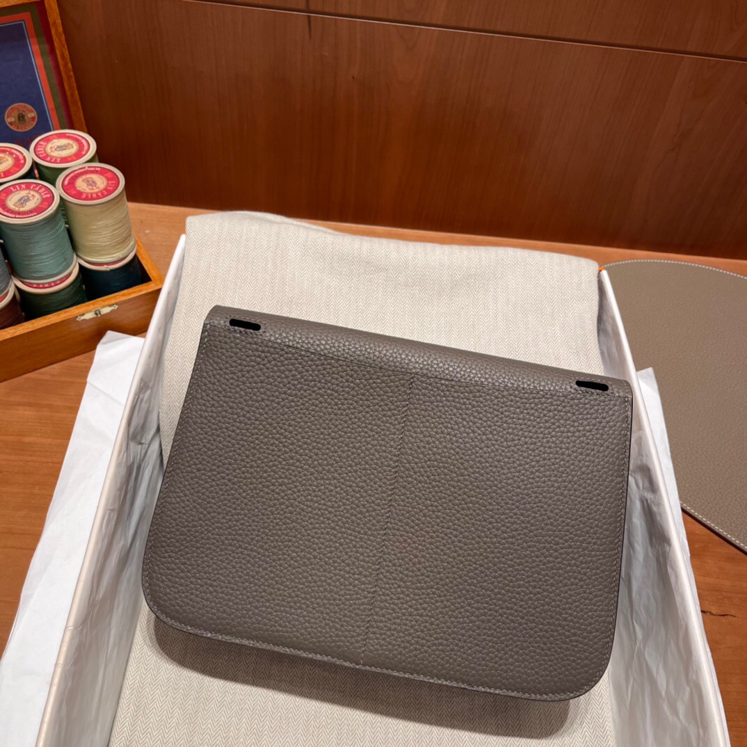 Hermes Halzan 25cm taurillon Clemence 皮 18 大象灰 Etoupe 全手工蜜蠟線縫製
