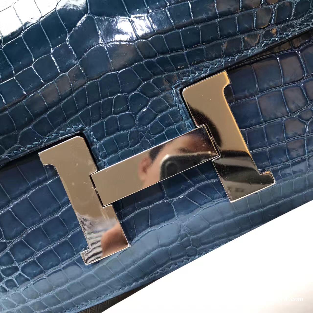 愛馬仕 康斯坦斯包 Constance 23 光面鳄鱼 1P Colvert鸭子蓝色银扣 蓝得优雅蓝得气质,愛馬仕最難買的包袋。小巧玲瓏易於攜帶,“H”標誌極具個性。