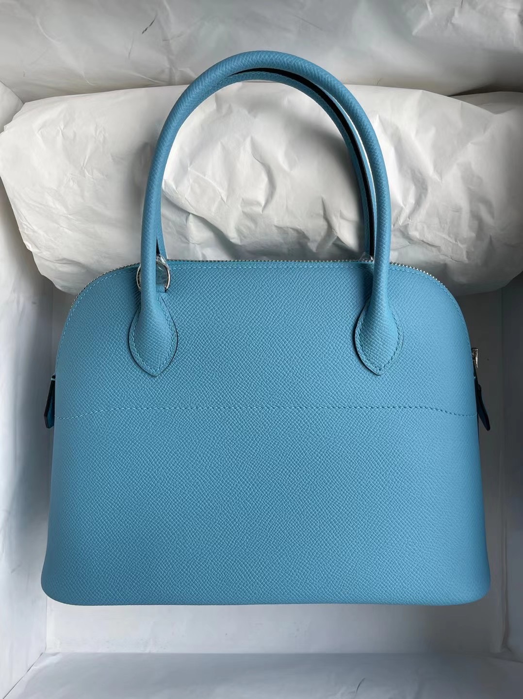 愛馬仕保齡球包價格 Hermes Bolide 1923 27cm Epsom CKP3 Bleu Du Nord 北方藍 銀扣 全手工蜜蠟線縫製 客定出