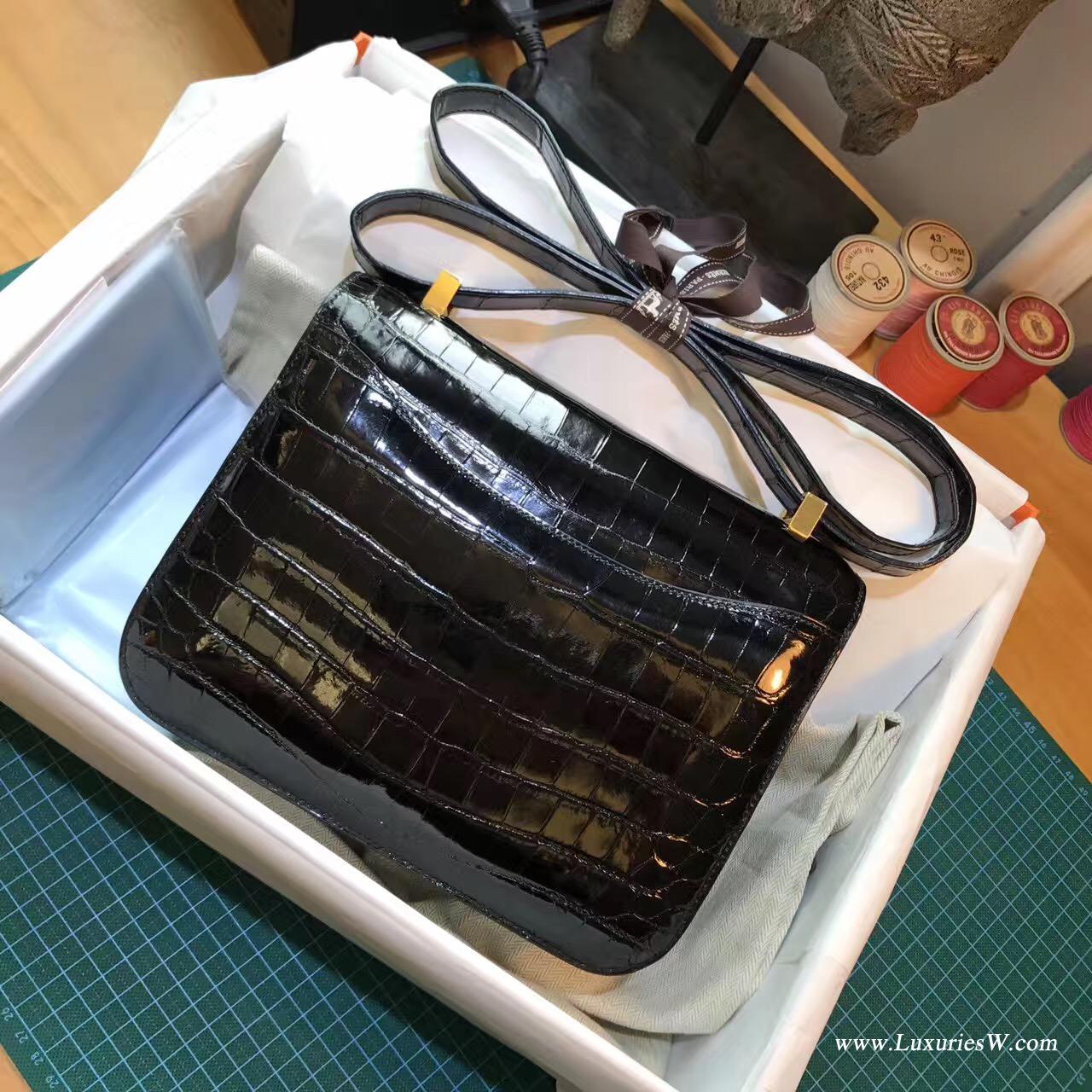 愛馬仕 康斯坦斯包Constance 23 光面鱷魚黑色 金扣金屬CK89 Nior日常必備 可以當大號手包,愛馬仕最難買的包袋。小巧玲瓏易於攜帶,“H”標誌極具個性。