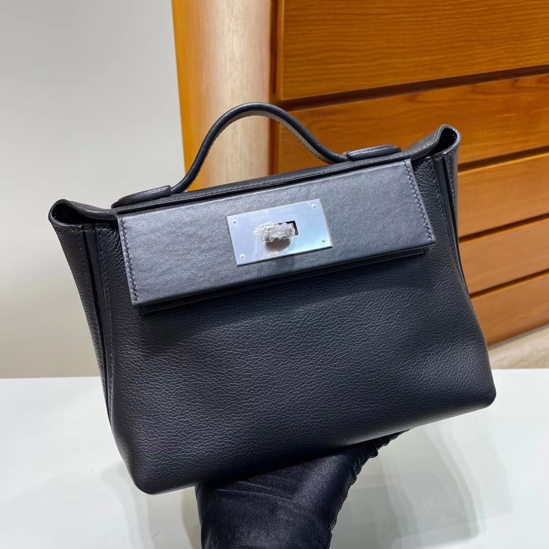 愛馬仕 Hermès Mini 24/24 Bag Evercolor/Swift CK89 Noir 黑色
