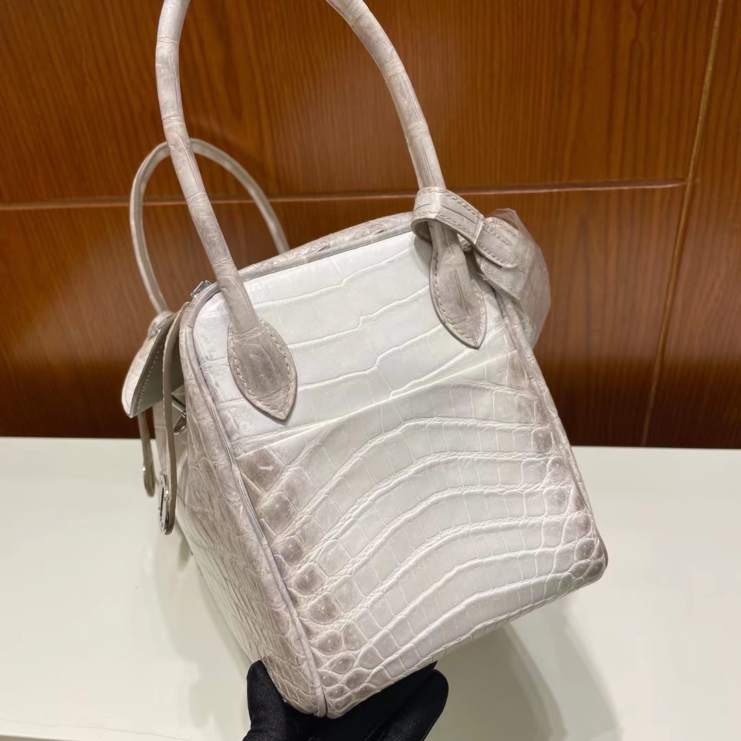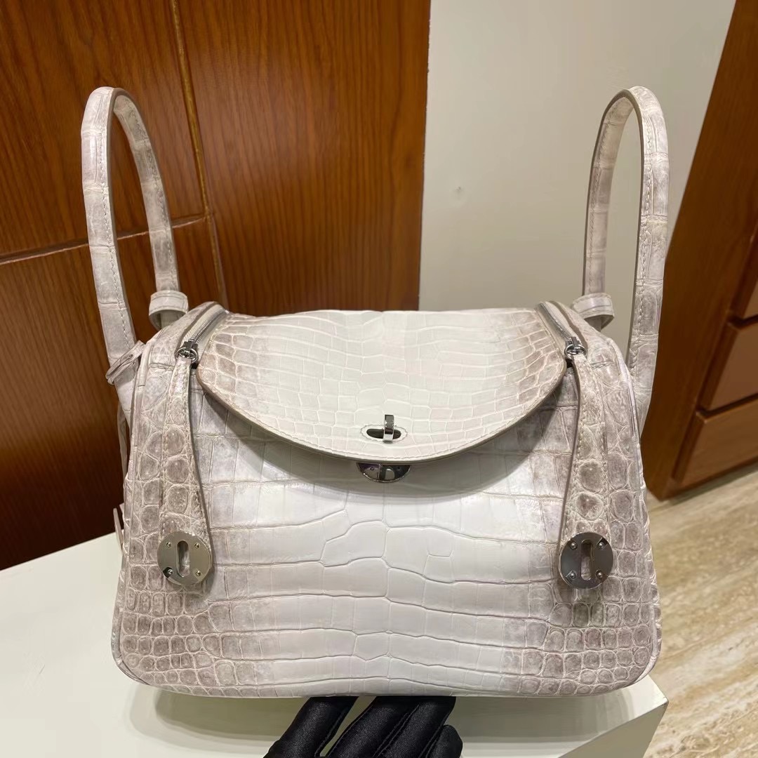 愛馬仕最新款 Hermes Lindy 26CM Himalayan 喜馬拉雅 CK01 BLANC Himalayan Crocodile Palladium Hardware 全手工蜜蠟線縫製 銀扣