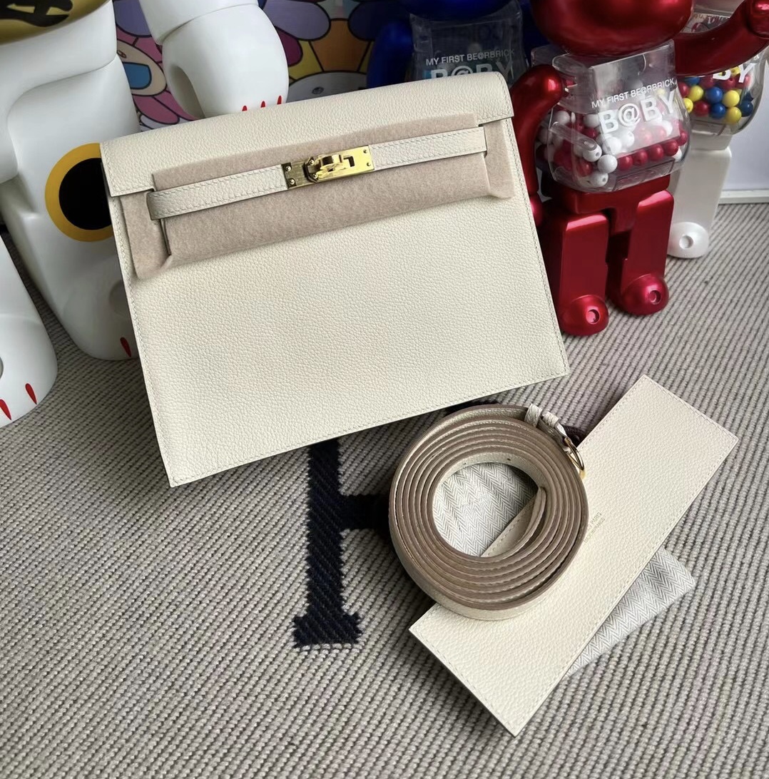 愛馬仕跳舞包多少錢 Indonesia Hermes Kelly Danse 22cm Evercolor 10 Craie 奶昔白 金扣 全手工蜜蠟線縫製 Stock