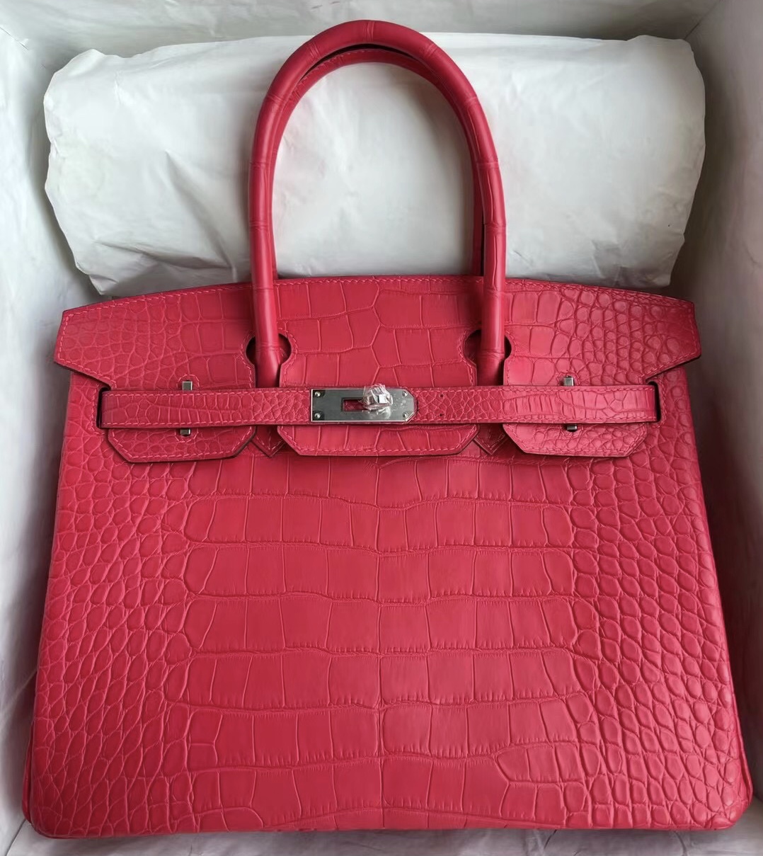 愛馬仕鉑金包包價格一覽表 Hermes Birkin 30cm 霧面美洲鱷魚 Matter alligator crocodile I6 Rose Extrême 極致粉 銀扣 全手工蜜蠟線縫製 客定出