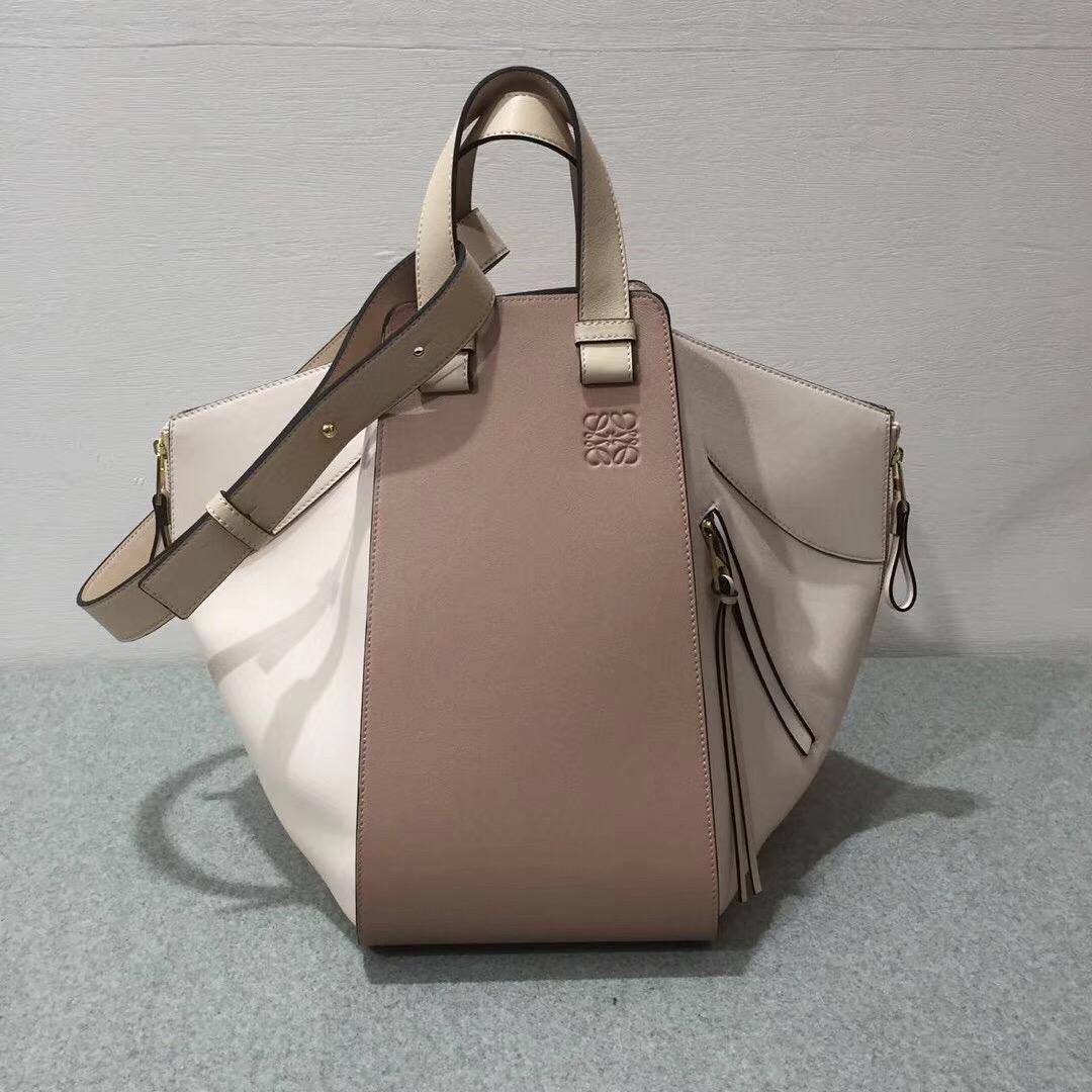 羅意威loewe Versatility and eye-catching, multi-functional form define the Hammock, the latest, completely novel bag design from LOEWE. Its innovative design allows this bag to be worn as a shoulder bag, hand-held or even as a crossbody guaranteeing modern comfort and a different character for different times of the day. It’s fitted with zipped and patch pockets for easy organization. Key features: classic calf leather, hand-edge painting, hook fastening at open top, folded zippered sides, exterior zippered pocket, embossed Anagram and two leather top handles.