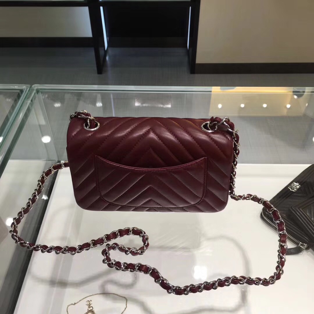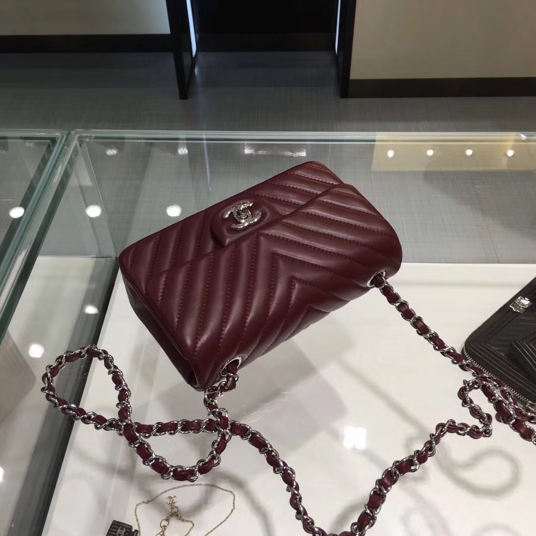 小香經典口蓋包Chane Classic Flap Bag 20cm原廠羊皮酒红色 V形縫線银链条金属