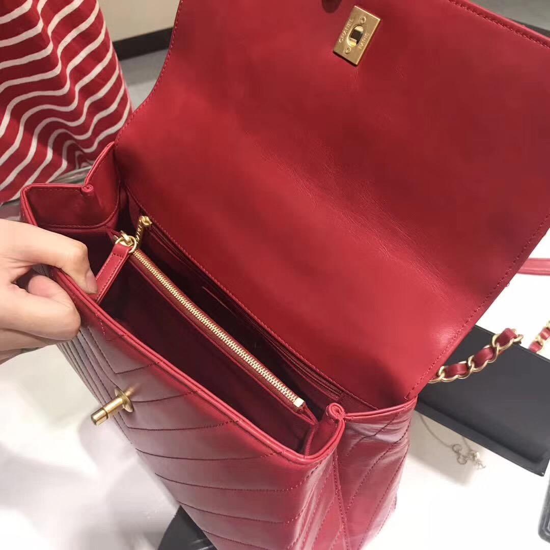 小香復古 红色手提包coco handle bag 中號28cm 油臘皮手袋金色金屬。