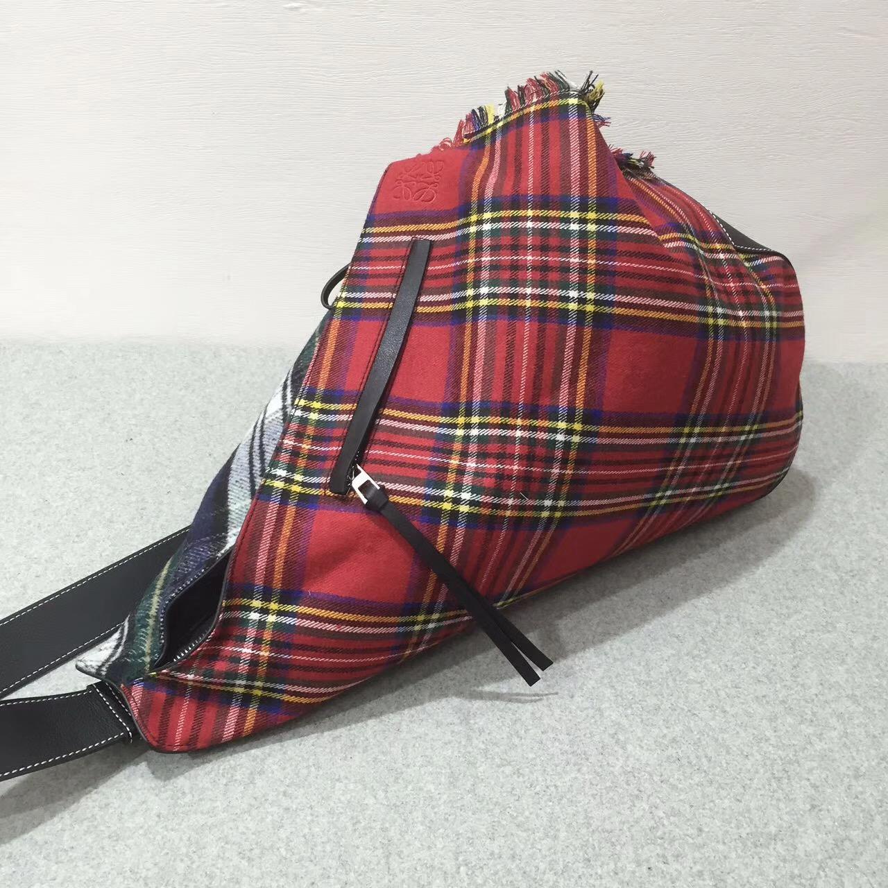 loewe羅意威 Anton Backpack 系列 大號采用花呢格紋與小牛皮拼接,線條的樅橫交織帶妳前往壹場復古的秋日漫遊,內裏裏布,實用輕便,可單背也可當胸包,肩帶下面兩邊可調左右邊,超值得擁有的壹款!